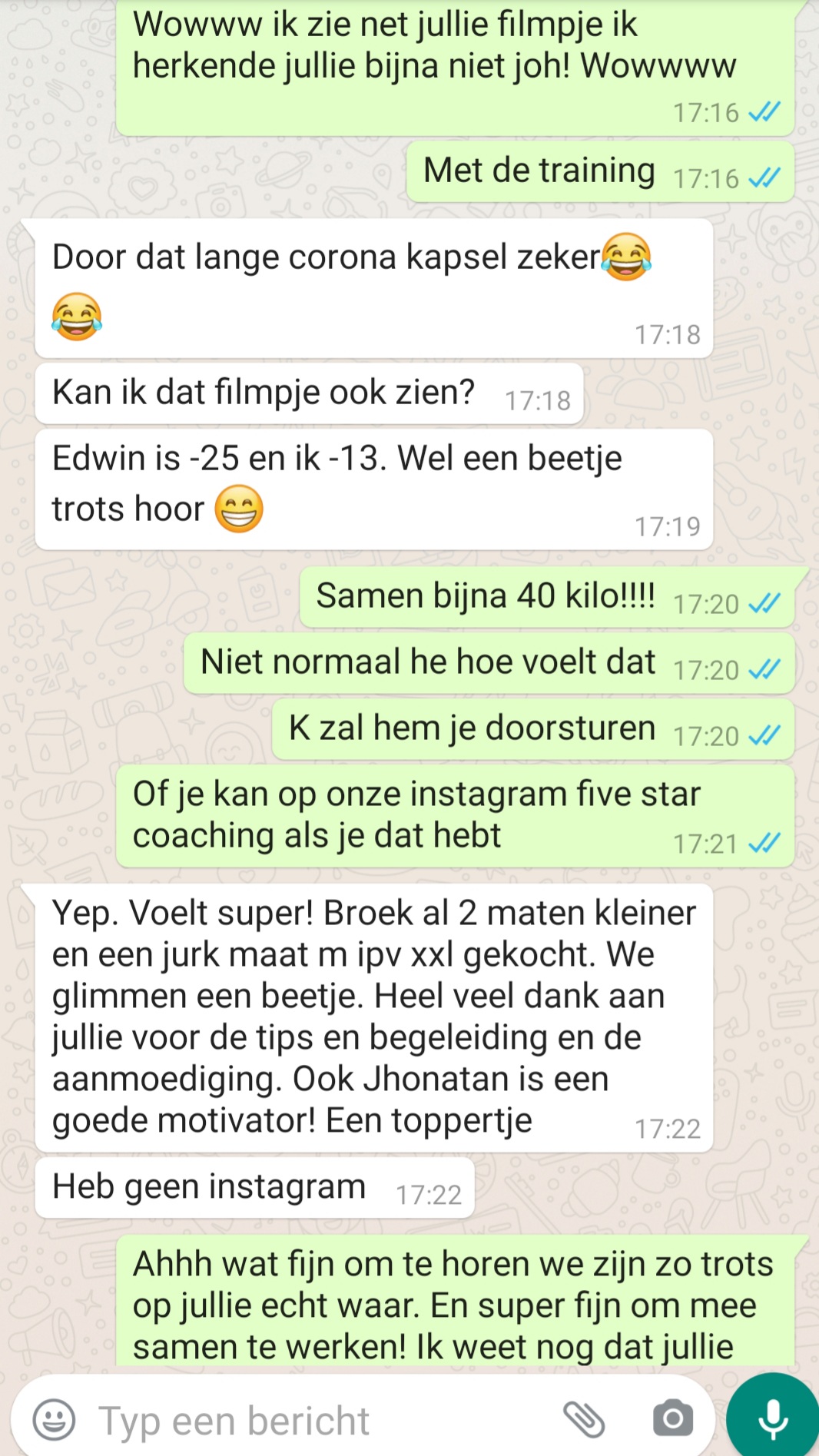Five Star is ontstaan door personal training, leefstijl coaching en voedingsbegeleiding. We hebben hier jaren aan ervaring en 1900+ dames geholpen aan een lichaam en leefstijl transformatie. Heb je een extra steuntje in de rug nodig, dan ben je bij ons aan het juiste adres!