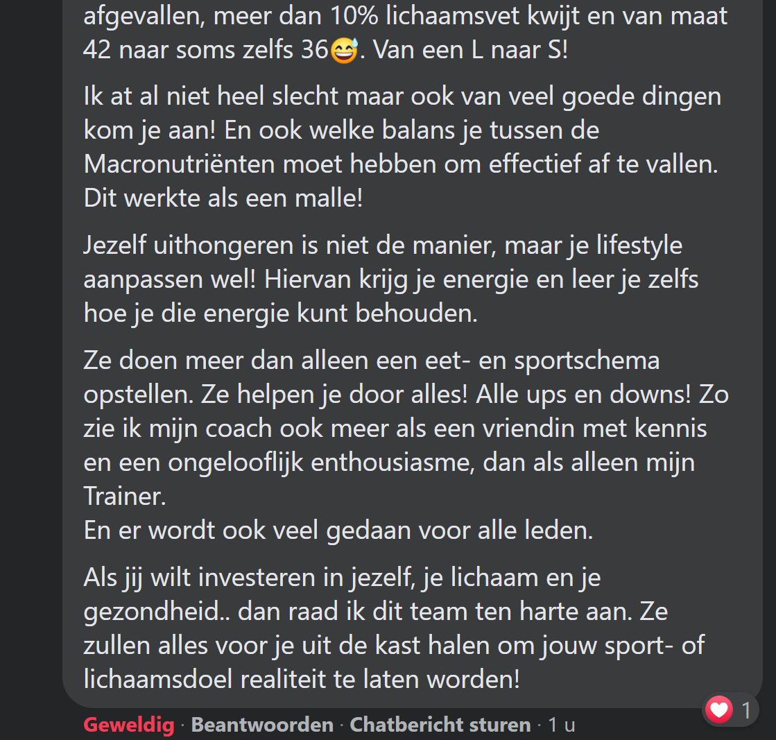 Fitness heeft mij niet alleen sterker en fitter gemaakt maar vooral ook zelfverzekerd en mijn mindset positiever!