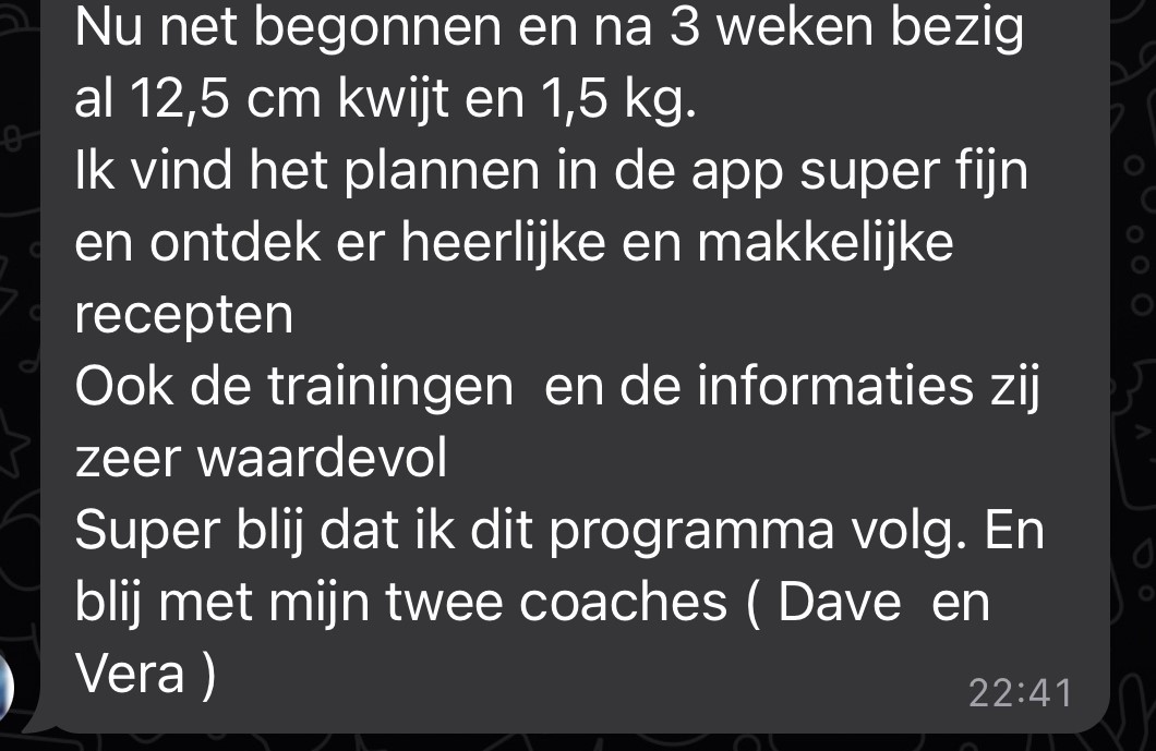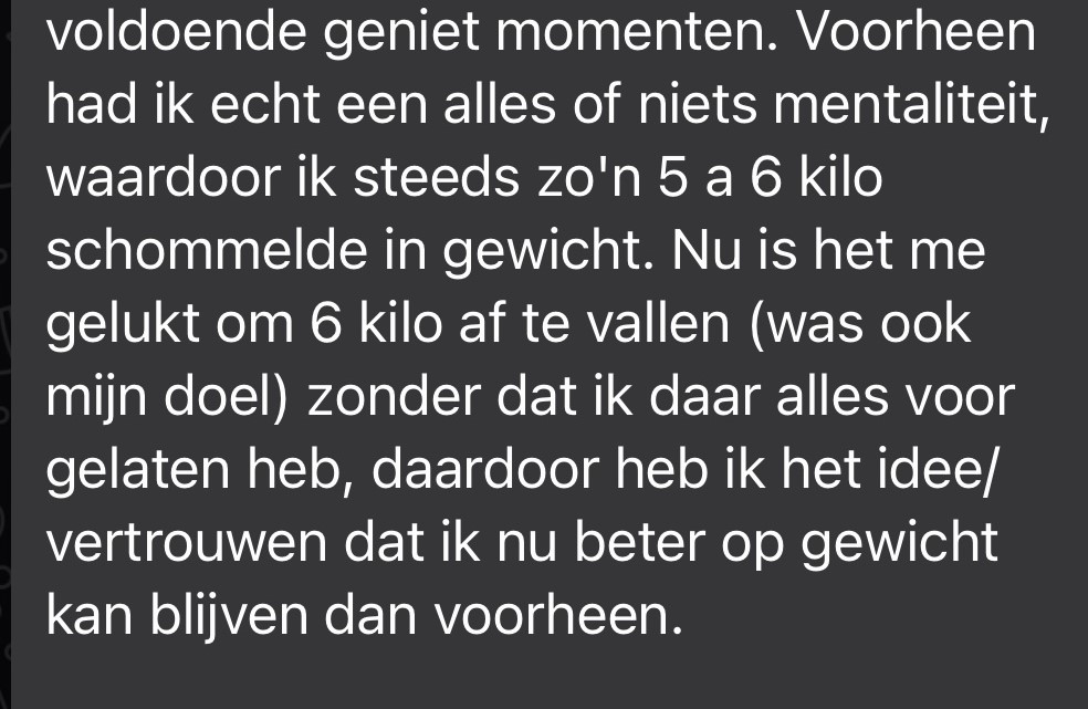 Want anders is het ALTIJD een keuze, OF je mag alles eten OF je kan afvallen en dan verlies je altijd. Wij geloven in WIN WIN, alles leren eten EN genieten van jouw fijne en fitte lichaam. Bovendien hebben we al honderden keren bewezen dat dit de manier is voor een leven lang resultaat.