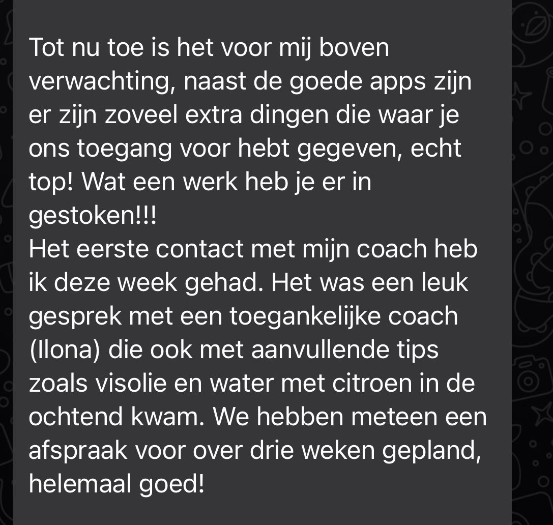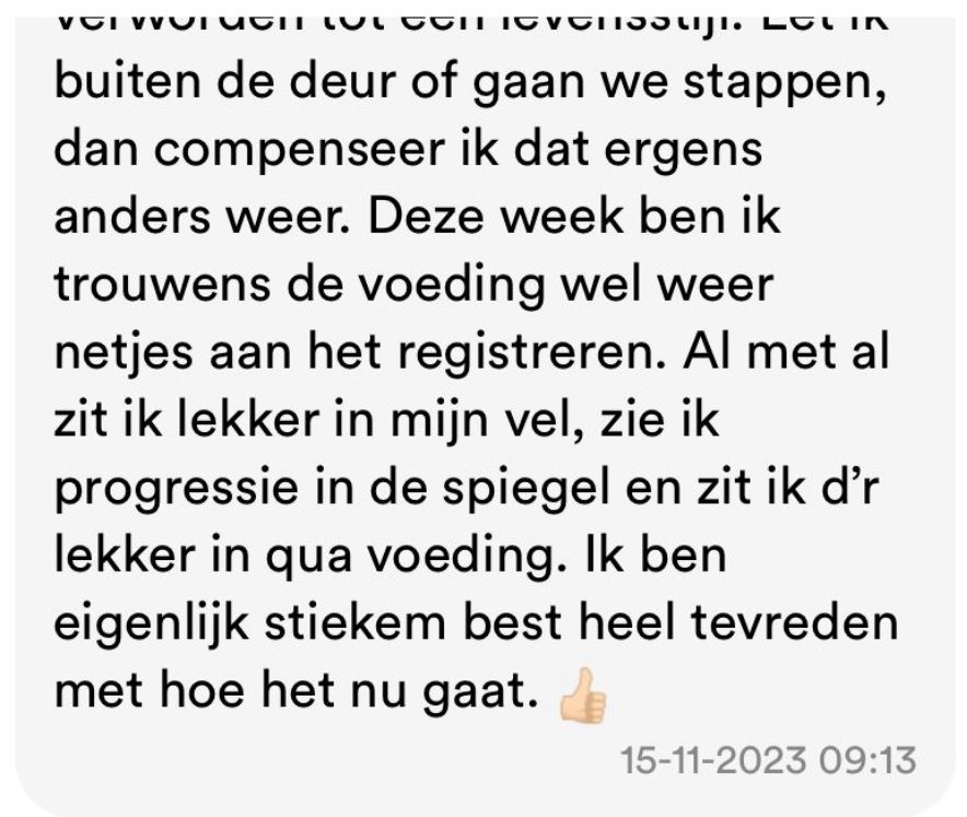 wil je vooral dat je eerlijk gecoacht wordt in stappen die haalbaar zijn en die jij vol kunt houden?