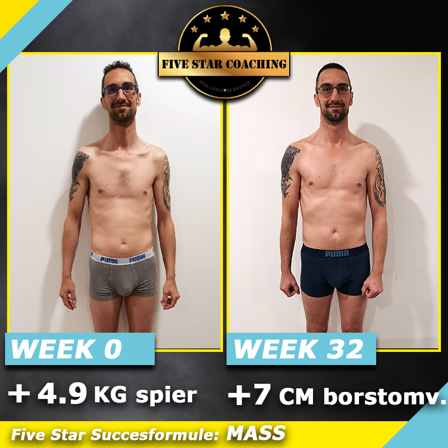 Met de MASS succesformule heb ik al enorm veel mannen en vrouwen aan eenzelfde trotse gevoel mogen helpen. Dit programma is ontwikkeld in 12 fases en heeft keer op keer zijn succes bewezen voor optimale spieropbouw voor beginners, intermediate en gevorderden.